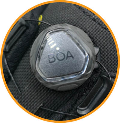BOA® Fit System is a rapid, easy and accurate lacing system with no need for laces. Eliminates the risk of falls and untying laces.
